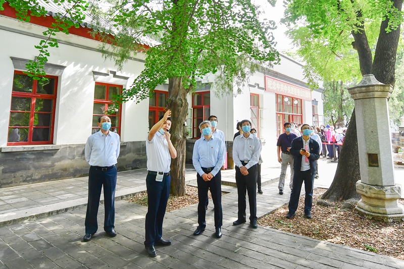 香山作为中国革命胜利前夕党中央所在地,是中国人民解放战争走向全国性胜利的指挥部,是中国共产党人“进京赶考”的第一站。抵达香山革命纪念地后,全体人员首先来到双清别墅,瞻仰中共中央旧址和毛泽东同志当年办公居住的地方。随后来到来青轩,瞻仰朱德、刘少奇、周恩来、任弼时同志的办公居住地,缅怀当年在香山工作生活的老一辈革命家。