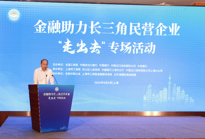 6月5日上午,全国工商联与中国进出口银行、中国银行、中国出口信用保险公司和中信银行在上海共同举办金融助力长三角民营企业“走出去”专场活动。本次活动旨在认真贯彻落实习近平总书记在深入推进长三角一体化发展座谈会上的重要讲话精神,落实中央经济工作会议、中央金融工作会议决策部署,深化全国工商联和金融机构务实合作,进一步为民营企业“走出去”和参与高质量共建“一带一路”提供金融支持与服务。全国工商联党组成员、副主席邱小平,中国银行党委委员、副行长张小东,中国出口信用保险公司党委委员、副总经理张辉,上海市委统战部副部长、市工商联党组书记王霄汉,上海市虹口区委书记李谦出席并致辞。中信银行党委委员、副行长谢志斌出席活动,全国工商联国际合作部主要负责同志主持活动。