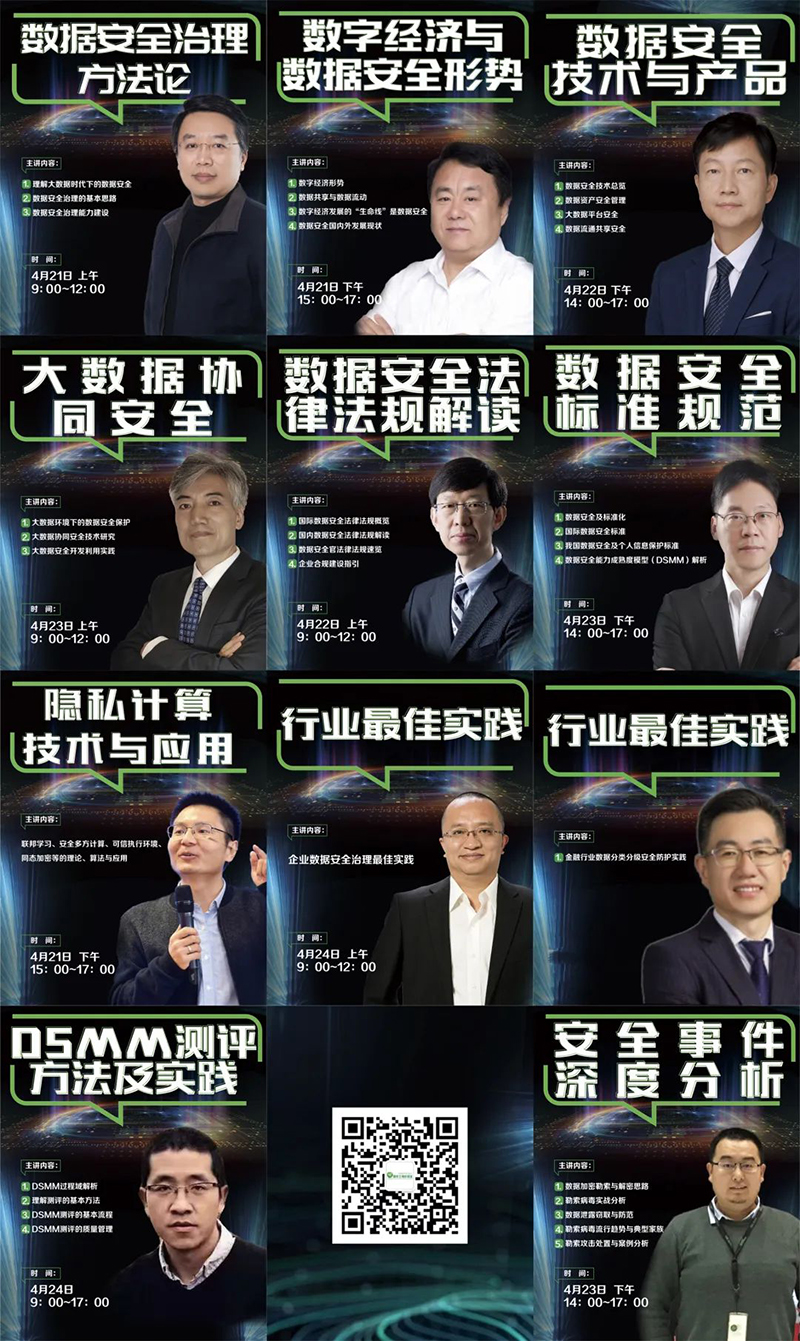 来自大数据协同安全技术国家工程研究中心、国家信息技术安全研究中心、密码科学技术国家重点实验室、中伦律师事务所、360公司、中电长城网际系统应用有限公司、阿里巴巴、天空卫士、安华金和等单位的多位业内知名大咖和行业专家进行了授课和交流互动。