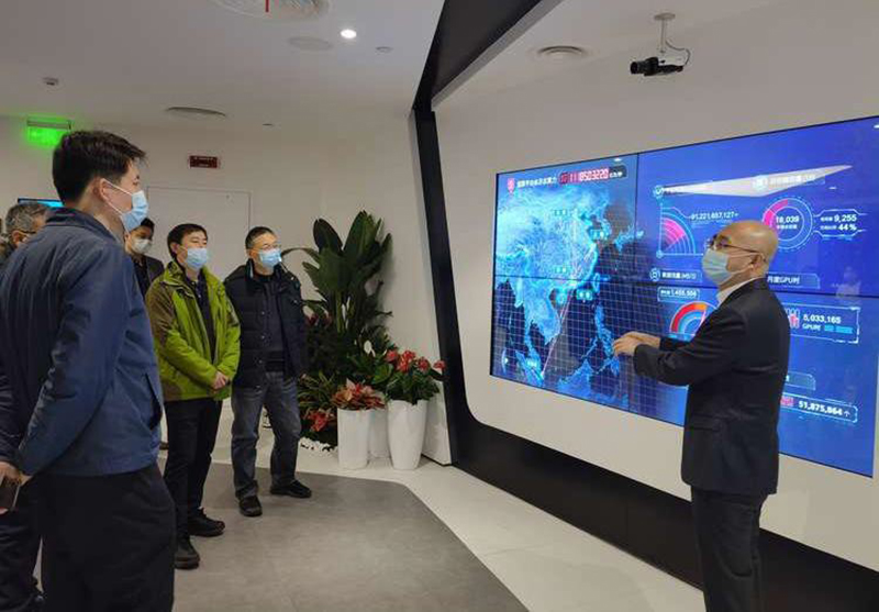 在北京市商汤科技开发有限公司走访时,商汤集团副总裁孙大鹏介绍了公司人工智能及物联网相关业务,并带领参观了商汤AI体验中心。