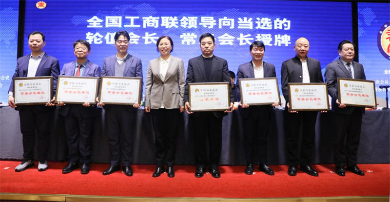 汪鸿雁向常务会长、轮值会长授牌