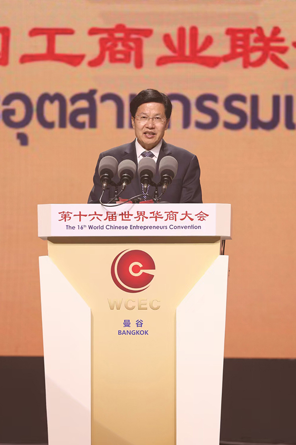 高云龙在第十六届世界华商大会致辞中指出,在人类文明进步的舞台上,一代代华商用越洋登山的气概、滴水穿石的韧劲、自强不息的精神,闯出了敢为人先的创业新路,诠释了立人达人济天下的人生境界,不断创造新的商业奇迹,为世界经济注入巨大活力,为推动中国改革开放和现代化建设作出了重要贡献,在“一带一路”建设中结出了甜美的硕果。中国共产党第二十次全国代表大会提出,中国将加快构建新发展格局,推进高水平对外开放。当前,中国21个自贸试验区和海南自由贸易港建设蹄疾步稳,西部陆海新通道畅通八方、链接中外,持续优化的营商环境吸引企业近者悦远者来。华商是沟通中国与世界的桥梁和纽带。希望广大华商秉承中华优秀文化传统,遵循国际通行惯例,遵守驻在国法律法规,尊重当地风俗习惯,加大科技投入,履行全球化企业的社会责任,光大和气生财的中华商道,展现中华文化的和合之美,展示礼仪之邦的美好形象,以企业之发展助推世界和平发展、人类文明进步,为建设持久和平、普遍安全、共同繁荣、开放包容、清洁美丽的世界贡献力量。