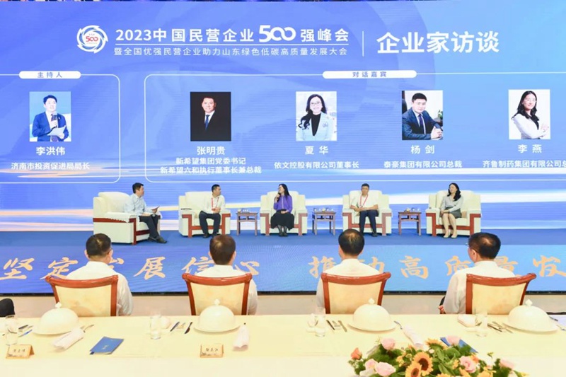 在企业家访谈环节,中国民间商会副会长、依文集团董事长夏华,新希望集团党委书记、新希望六合集团有限公司执行董事长兼总裁张明贵,泰豪集团有限公司总裁杨剑,齐鲁制药有限公司总裁李燕进行了分享。