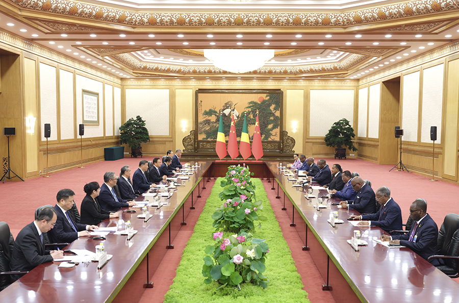 新华社北京9月4日电 9月4日中午,国家主席习近平在北京人民大会堂会见来华出席纪念中国人民抗日战争暨世界反法西斯战争胜利80周年活动的刚果(布)总统萨苏。两国元首宣布将双边关系定位提升为中刚高水平命运共同体。