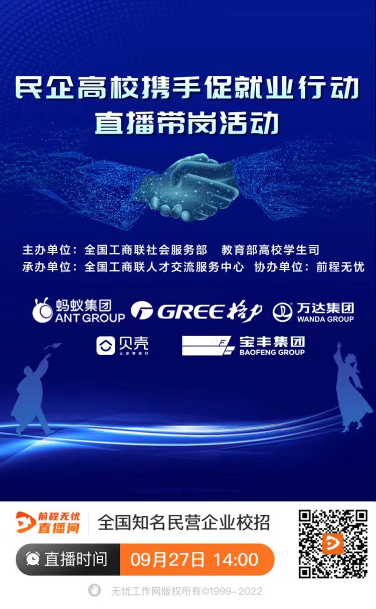 【直播预告】民企高校携手促就业行动直播带岗活动(全国知名民营企业校招专场,9月27日14:00)