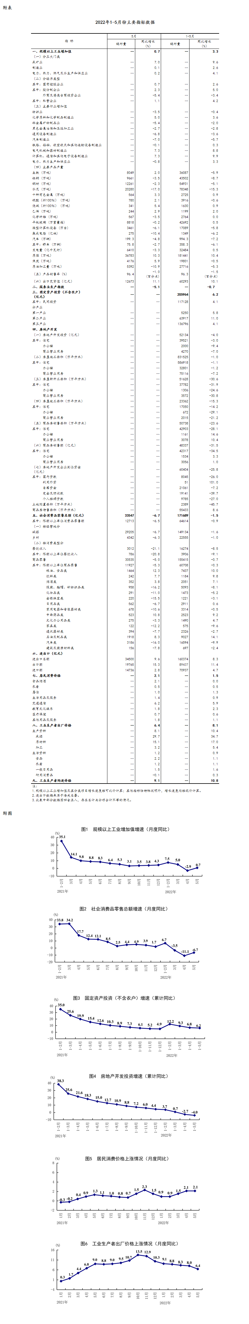 5月份,面对复杂严峻的国际环境和国内疫情带来的严重冲击,在以习近平同志为核心的党中央坚强领导下,各地区各部门高效统筹疫情防控和经济社会发展,着力稳定宏观经济大盘,国内疫情防控形势总体向好,生产需求逐步恢复,就业物价总体稳定,主要指标边际改善,国民经济呈现恢复势头。