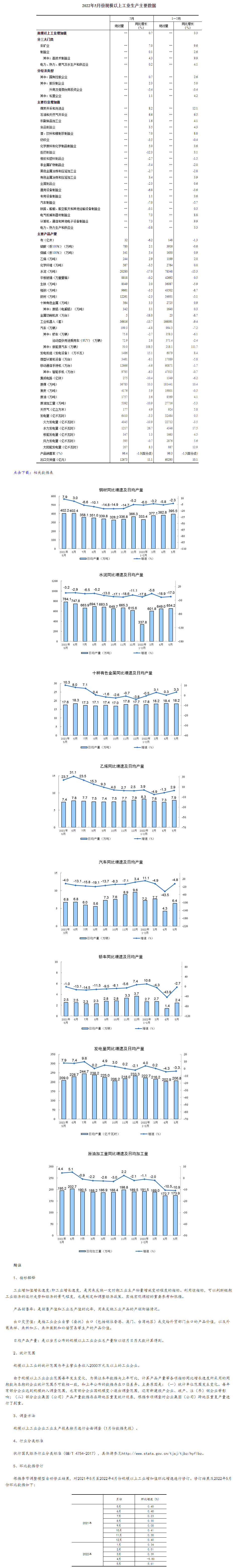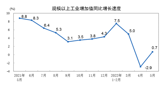 国家统计局:2022年5月份规模以上工业增加值增长0.7%