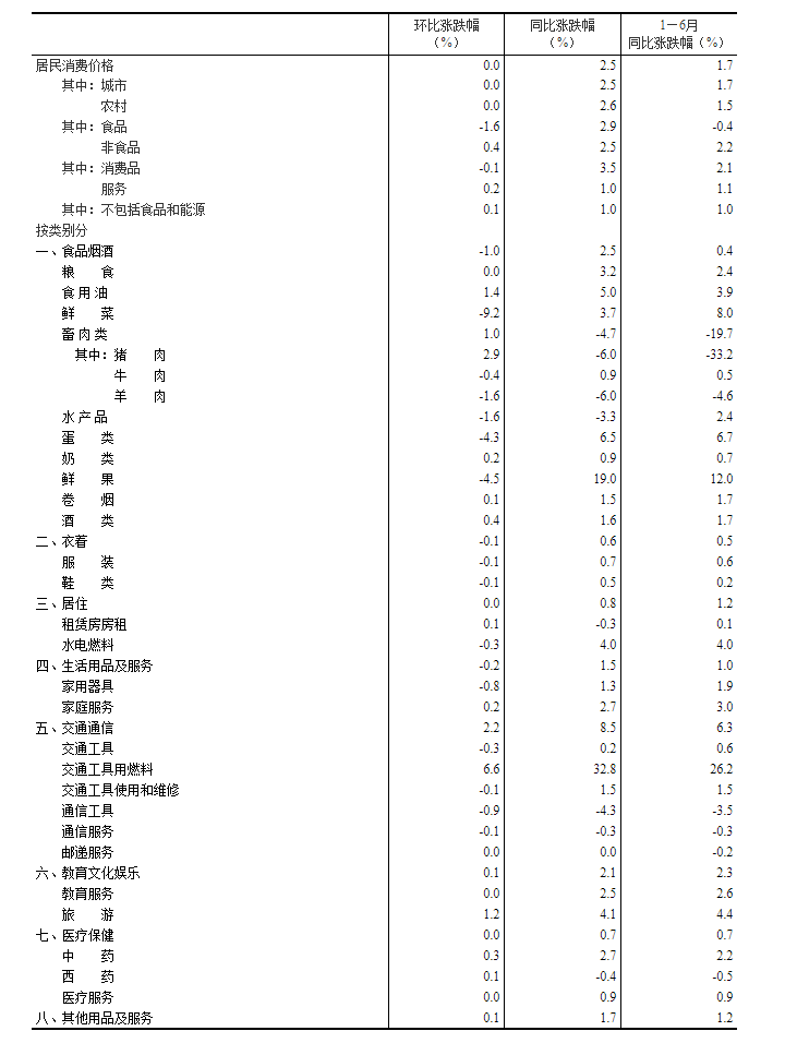 国家统计局:2022年6月份居民消费价格同比上涨2.5% 环比持平