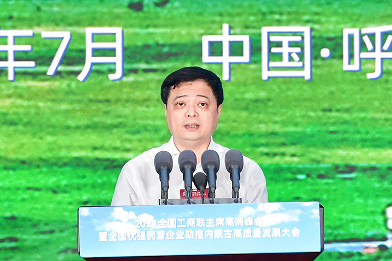 百年征程波澜壮阔,百年初心历久弥坚。在全国上下认真学习习近平总书记“七一”重要讲话的重要时刻,我们相聚在美丽的敕勒川草原,参加2021全国工商联主席高端峰会暨全国优强民营企业助推内蒙古高质量发展大会,共话助力建设亮丽内蒙古大计,我感到十分荣幸!