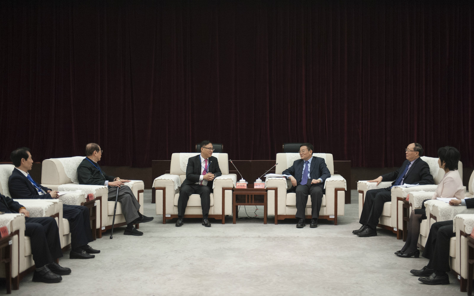 3月26日,全国政协副主席、全国工商联主席高云龙,中央统战部副部长,全国工商联党组书记、常务副主席徐乐江在全国工商联机关会见了由全港各区工商联会长卢锦钦率领的全港各区工商联访京团一行40余人。全国工商联副主席王永庆陪同会见。
