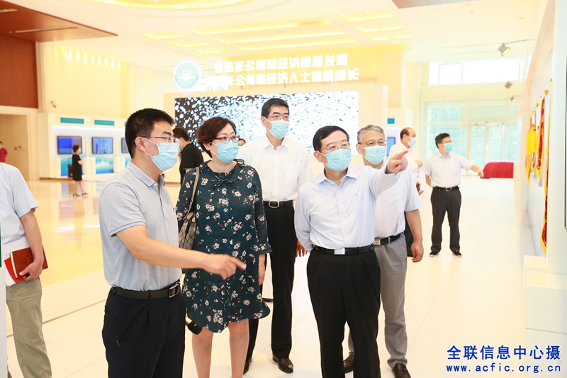 2020年7月28日,全国政协副主席、全国工商联主席高云龙,中央统战部副部长、全国工商联党组书记、常务副主席徐乐江在机关一层大厅参观由法律部主办的“工商联法律维权服务在行动”主题展。全国工商联党组成员、副主席邱小平、鲁勇等会领导,出席全国工商联十二届五次常委会的部分常委以及机关有关部门负责同志陪同参观。