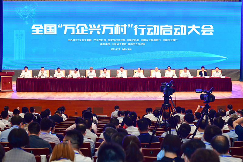 7月16日,全国工商联、农业农村部、国家乡村振兴局、中国光彩会、中国农业发展银行、中国农业银行在山东省潍坊市共同召开全国“万企兴万村”行动启动大会。会议传达了中共中央政治局委员、国务院副总理胡春华和中共中央书记处书记、中央统战部部长尤权对“万企兴万村”行动的批示。全国政协副主席、全国工商联主席高云龙出席会议并讲话。