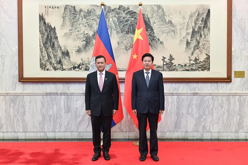 洪玛奈高度赞赏习近平主席提出的“一带一路”倡议。他表示“一带一路”倡议进一步促进了柬中两国经贸合作,加深了国家间互联互通,为全球经济发展注入动力和新活力,柬埔寨将继续支持和参与“一带一路”倡议。柬埔寨始终视中国为最可信赖和依靠的合作伙伴,恪守一个中国原则,坚定支持中方维护自身核心利益。