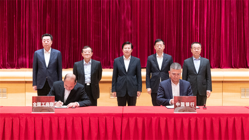 为深入贯彻习近平新时代中国特色社会主义思想,深化落实党中央、国务院关于支持民营经济发展壮大决策部署,推动民营经济高质量发展,2月22日,全国工商联与中国银行在京签署新一轮全面战略合作协议。全国政协副主席、全国工商联主席高云龙,中国银行董事长、党委书记葛海蛟出席并致辞。中央统战部副部长、全国工商联党组书记徐乐江主持仪式。中国银行行长、党委副书记刘金发布中国银行持续深化与全国工商联战略合作、进一步助力民营经济发展壮大的行动举措。全国工商联党组成员、副主席邱小平,全国工商联党组成员、秘书长赵德江,中国银行副行长、党委委员张小东等出席活动。