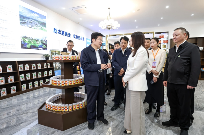 高云龙一行先后前往乌蒙利民生态茶场、百县百品织金品牌馆实地考察,现场察看项目联农惠农情况,并召开专题座谈会,认真听取意见建议,深入了解织金县巩固拓展脱贫攻坚成果同乡村振兴有效衔接工作成效。