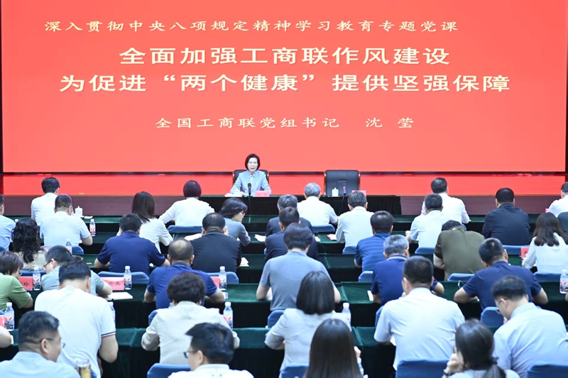 7月1日,中央统战部副部长、全国工商联党组书记沈莹为全国工商联党员干部讲专题党课。她强调,要深入学习贯彻习近平总书记关于加强党的作风建设的重要论述和在中央政治局第二十一次集体学习时的重要讲话精神,深刻领悟加强作风建设的重要性和紧迫性,严格执行中央八项规定精神,以优良作风开创工商联事业高质量发展新局面。