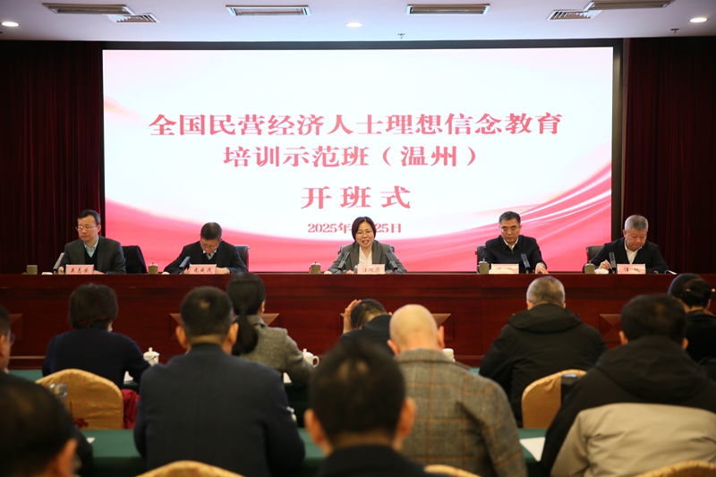 2月24日至27日,全国工商联在温州市社会主义学院举办全国民营经济人士理想信念教育培训示范班。全国工商联党组成员、副主席汪鸿雁出席开班式并讲话。浙江省工商联、温州市委有关领导致辞。