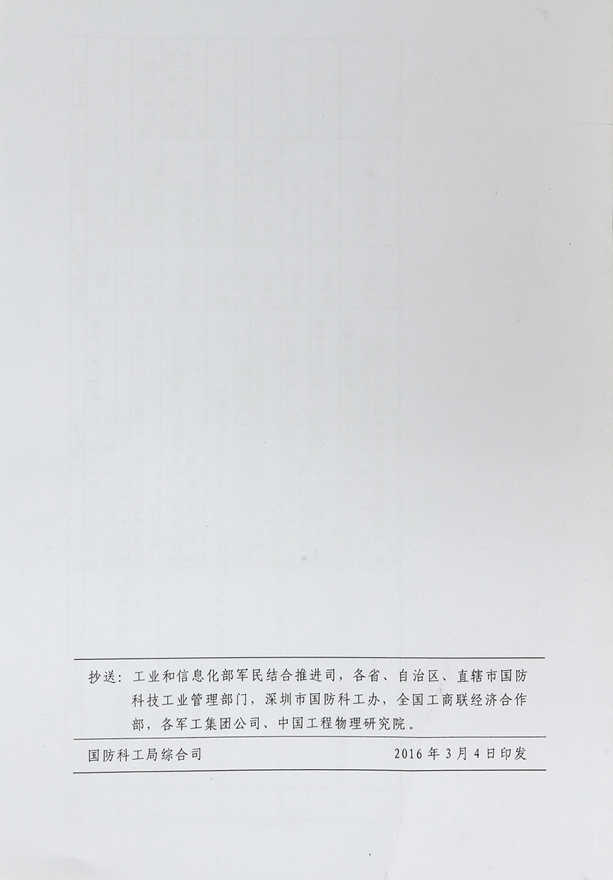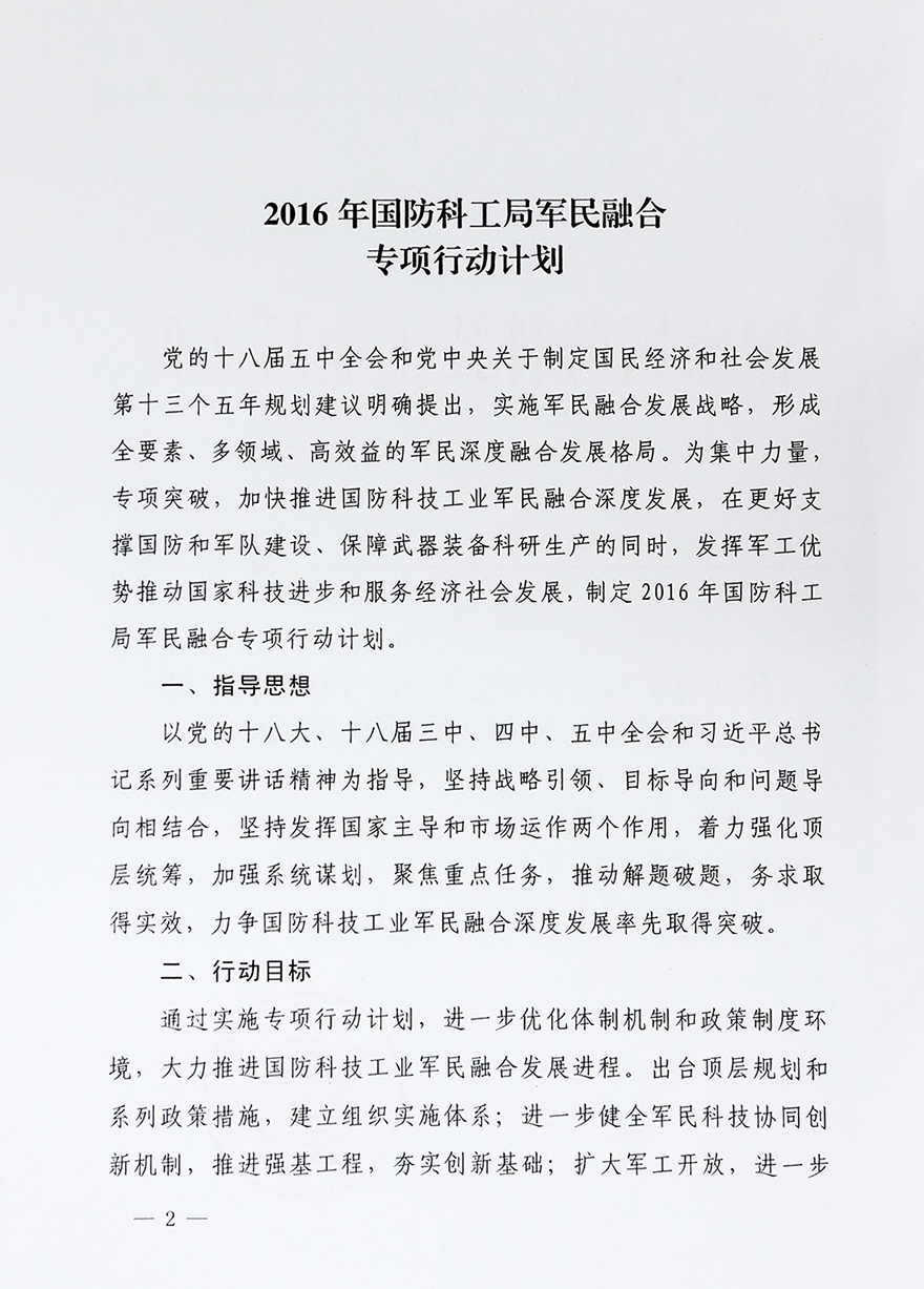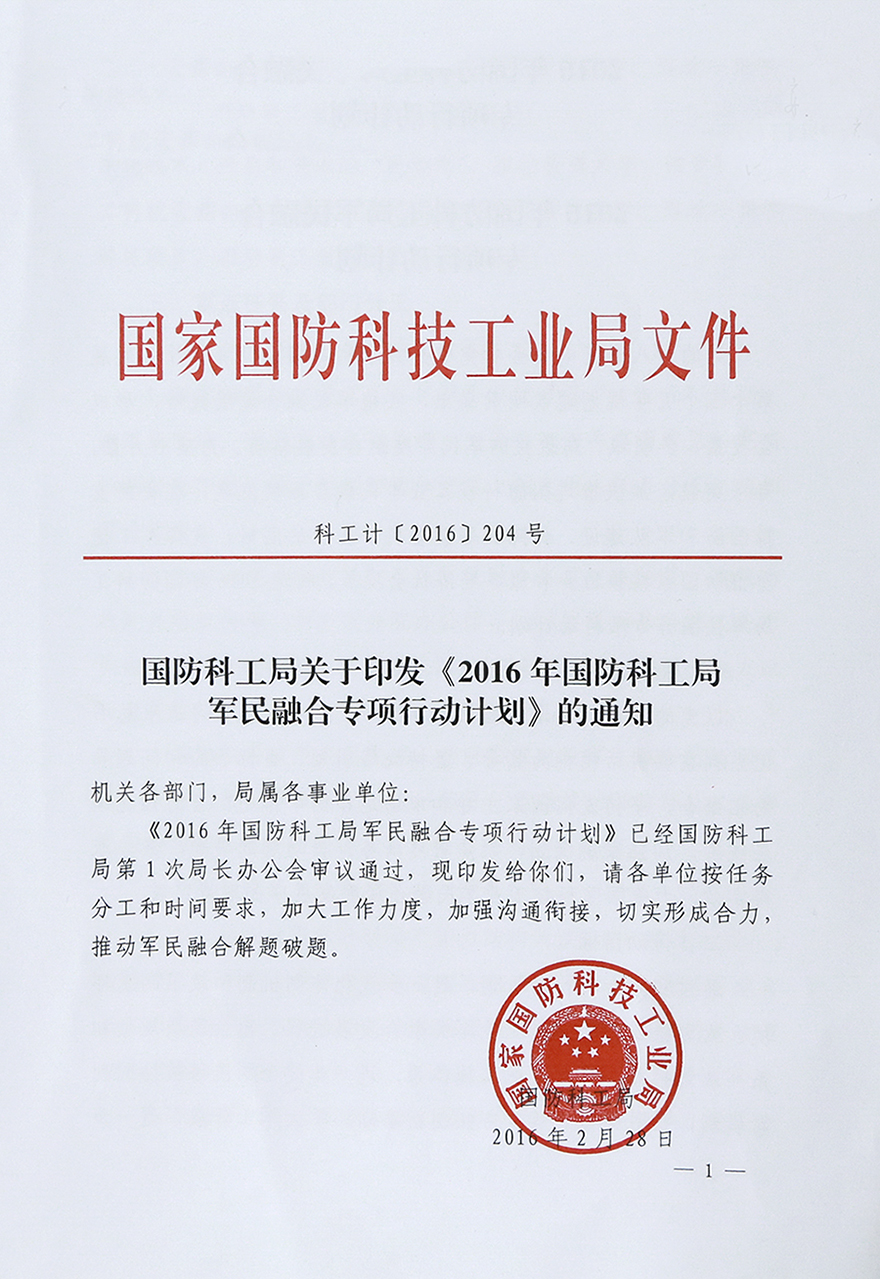 国防科工局关于印发《2016年国防科工局军民融合专项行动计划》的通知