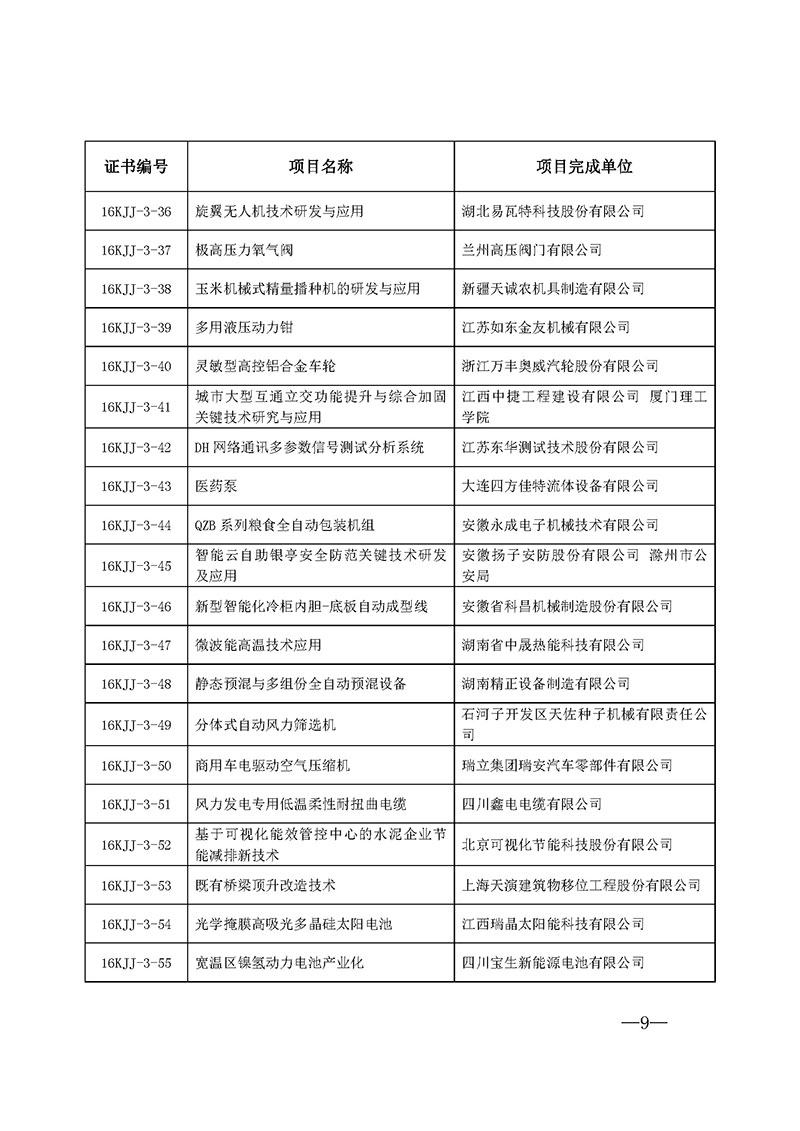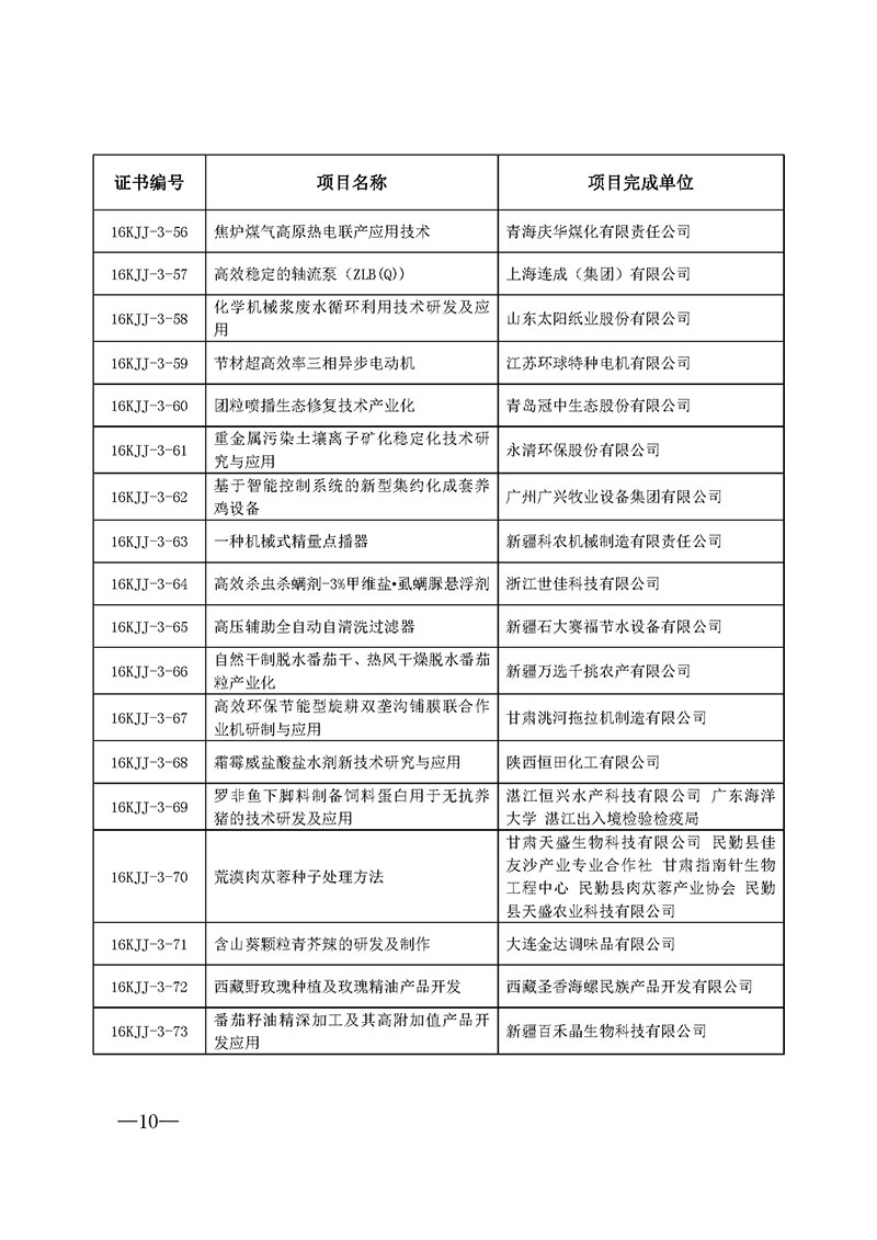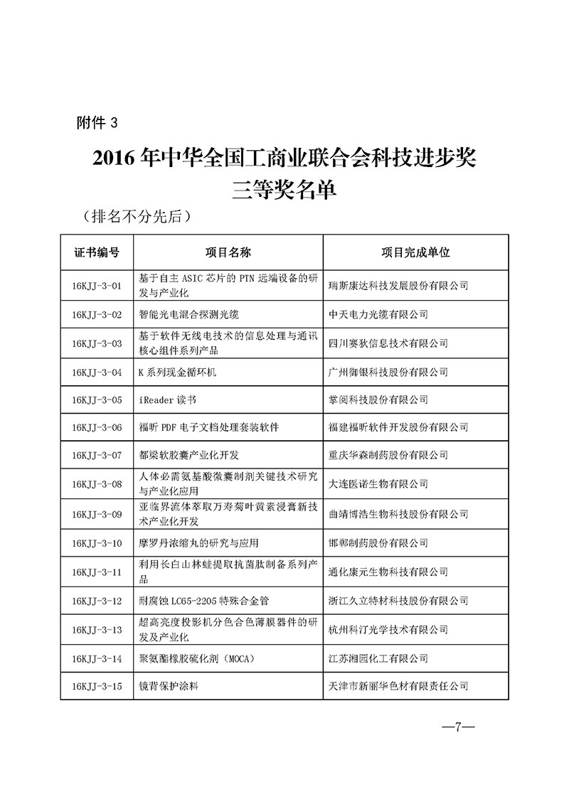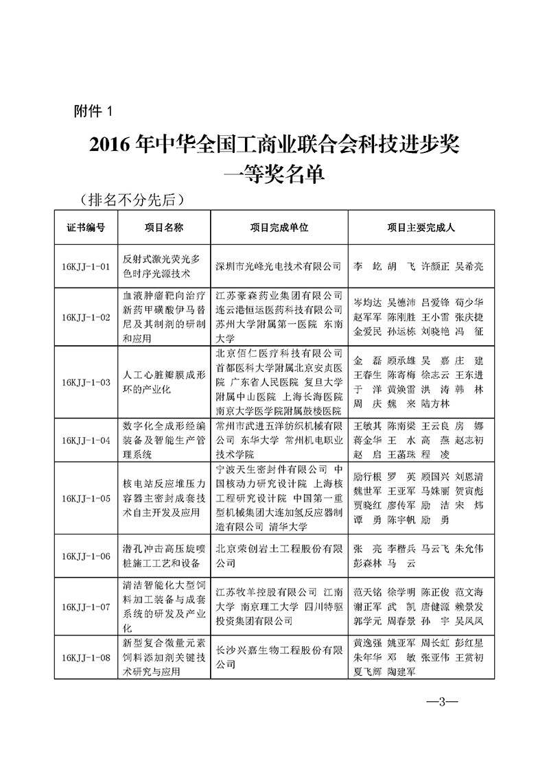3.2016年中华全国工商业联合会科技进步奖三等奖名单