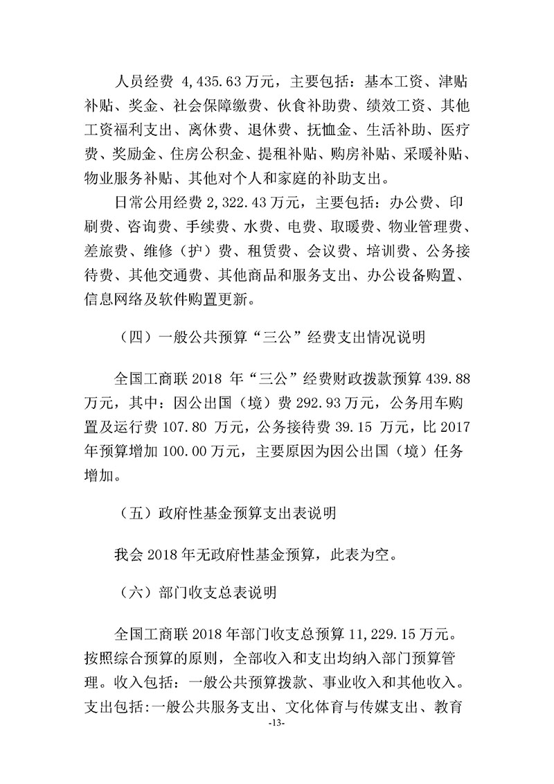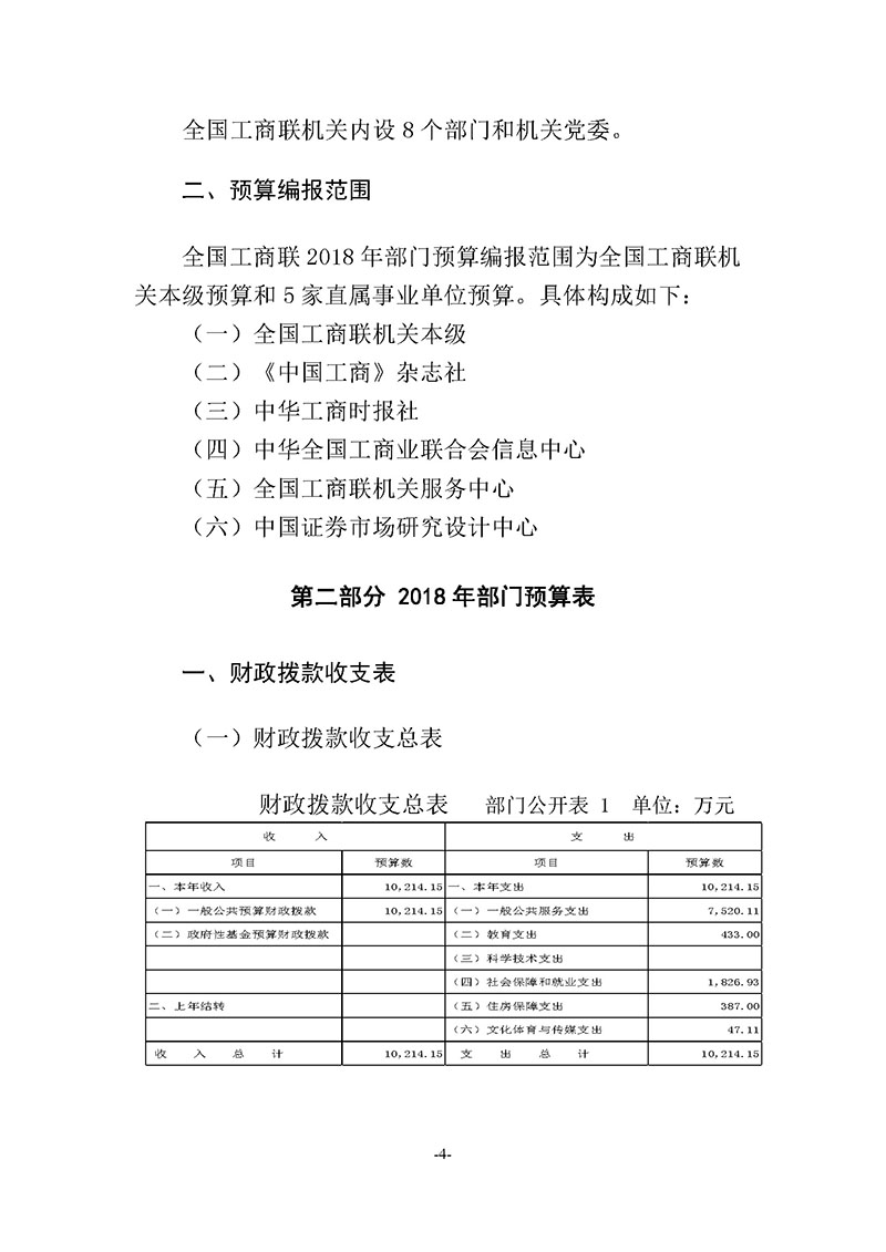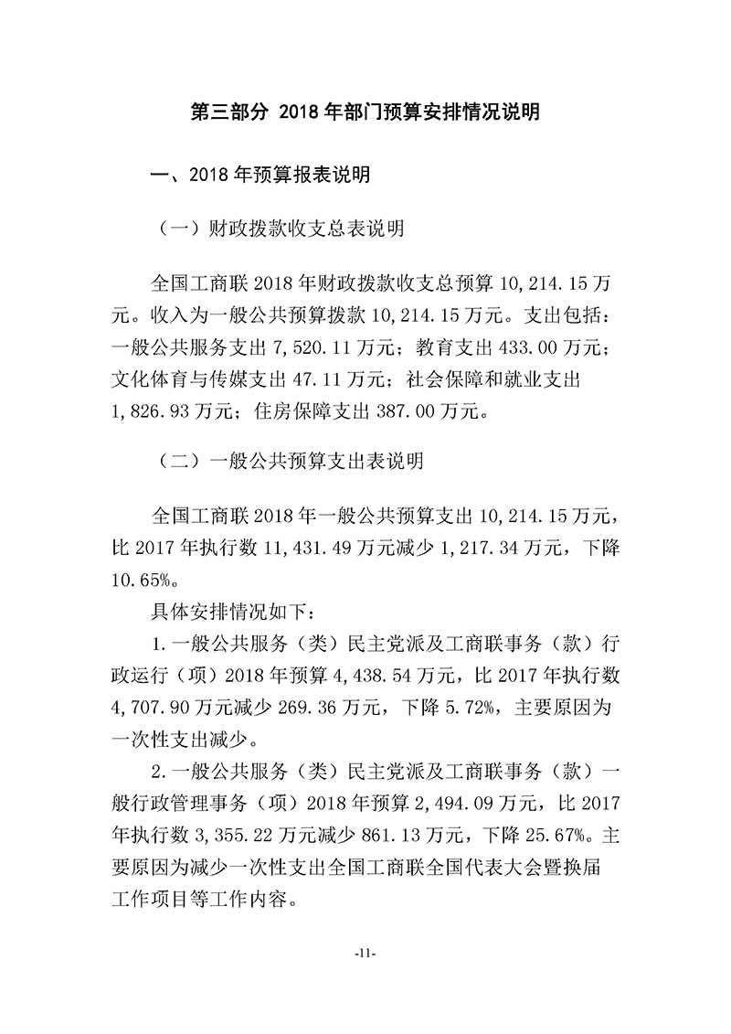 全国工商联2018年度部门预算