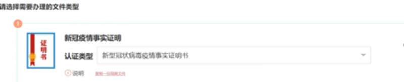 基本信息栏主要是显示申办方,文件所属方等信息,其中申办企业和消费国为必填项。填写申办企业时需是用户所绑定的企业,如果之前没有绑定,则可以输入企业全称,点击“保存为常用企业”在本页面进行绑定。(如为本公司自行申办文件所属方不用填写)出证周期选择“立等”;点击“添加文件”选择新冠疫情事实性证明;认证类型选择新型冠状病毒疫情事实证明书,按要求上传佐证材料(PDF格式)。