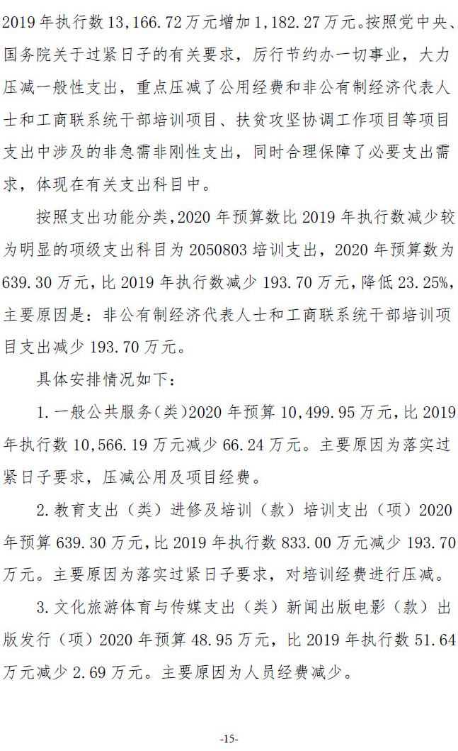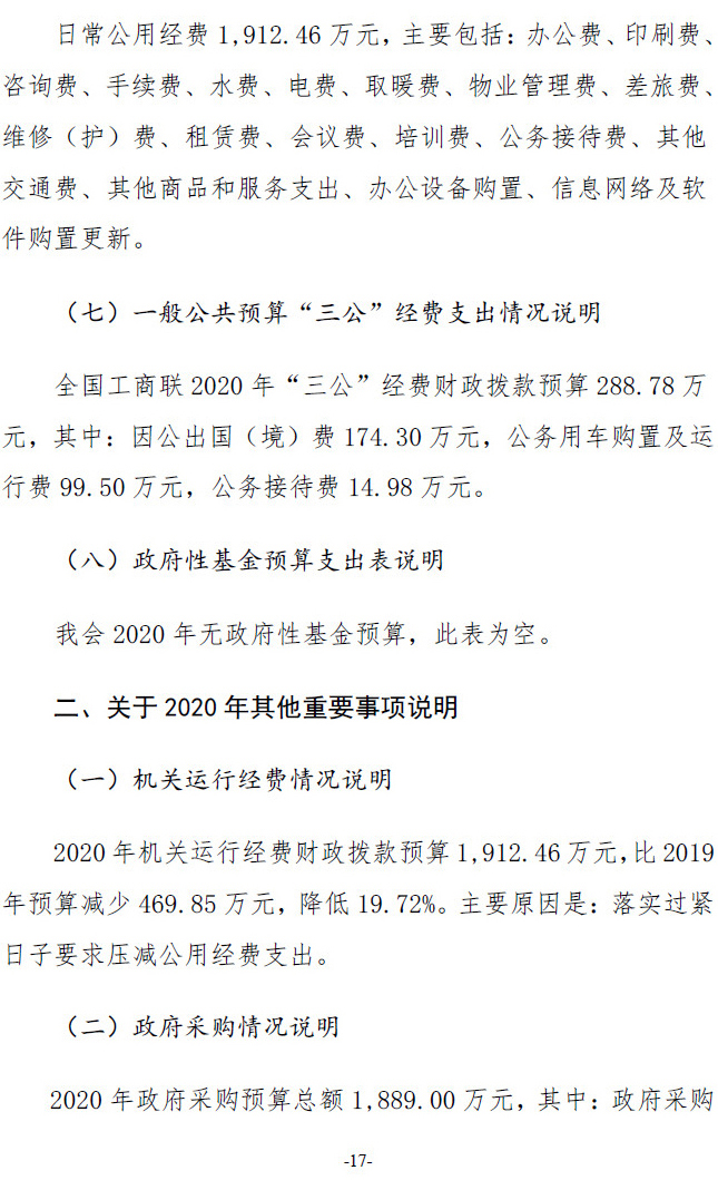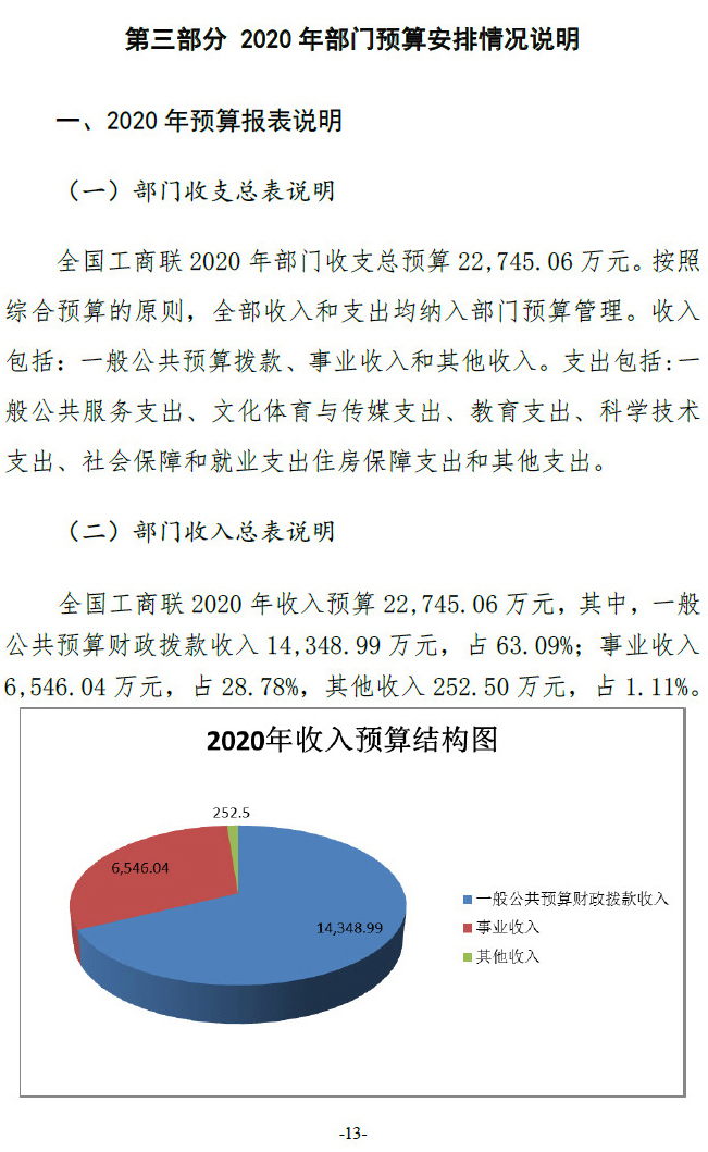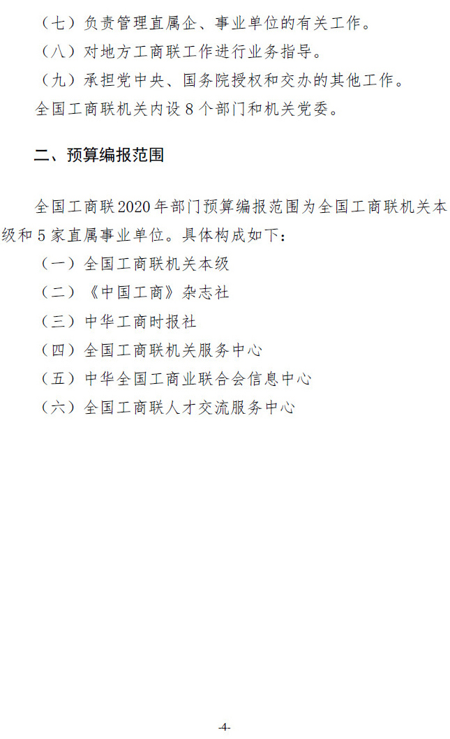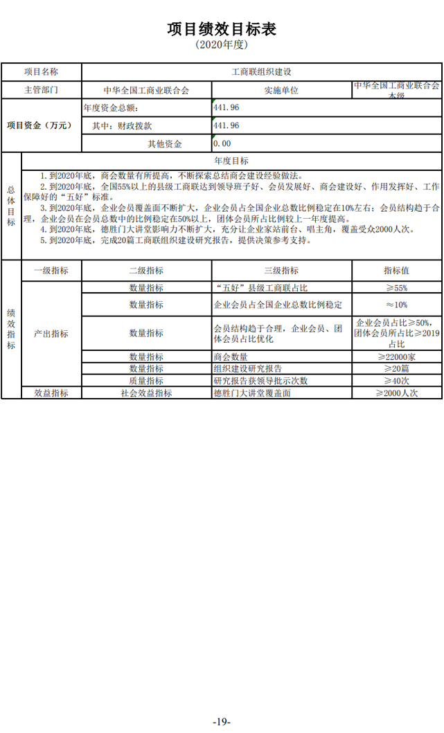 全国工商联2020年度部门预算