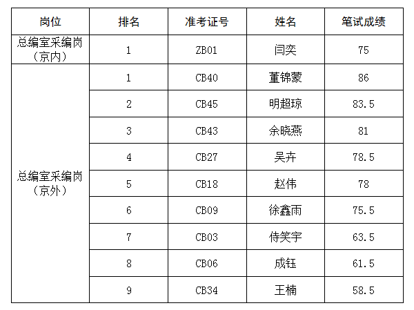 中华工商时报社于2021年5月9日组织了2021年应届毕业生招聘笔试,按照《全国工商联直属单位2021年度公开招聘应届高校毕业生公告》,现将笔试成绩向社会公布如下: