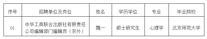 中华工商联合出版社有限责任公司2021年度公开招聘应届毕业生拟聘人员公示