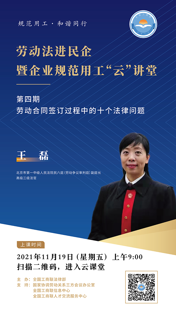 【直播预告】劳动法进民企暨企业规范用工“云”讲堂(第四期)