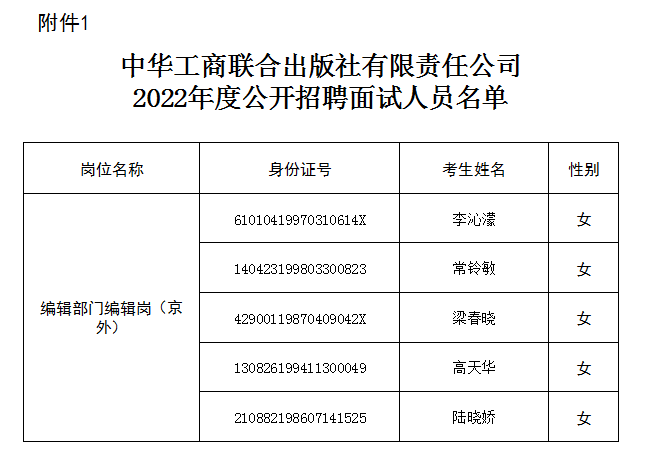 根据全国工商联直属单位2022年度公开招聘工作安排,现将中华工商联合出版社有限责任公司公开招聘面试工作公告如下。