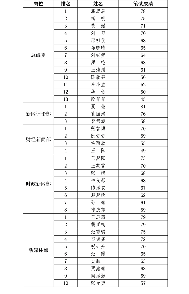 中华工商时报社2022年度公开招聘应届高校毕业生笔试成绩公示