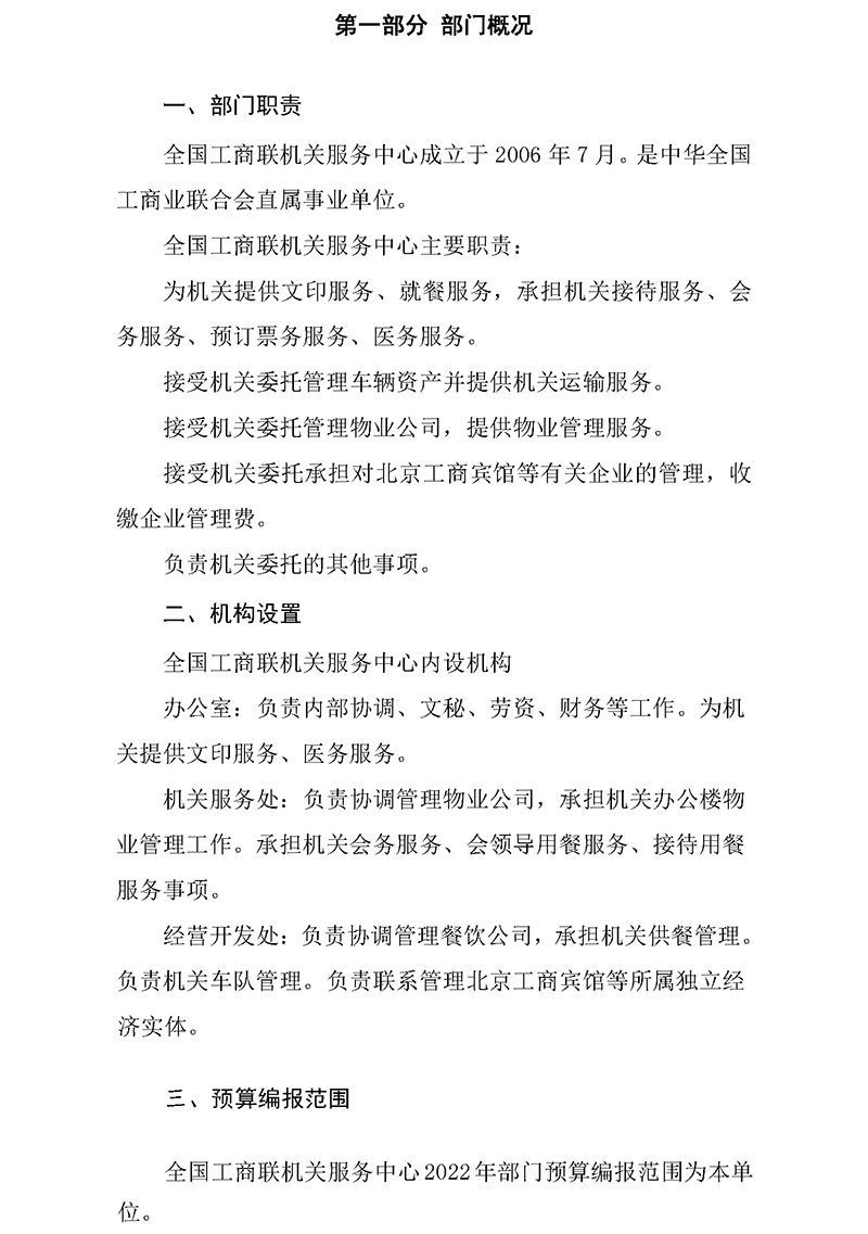 全国工商联机关服务中心2022年部门预算