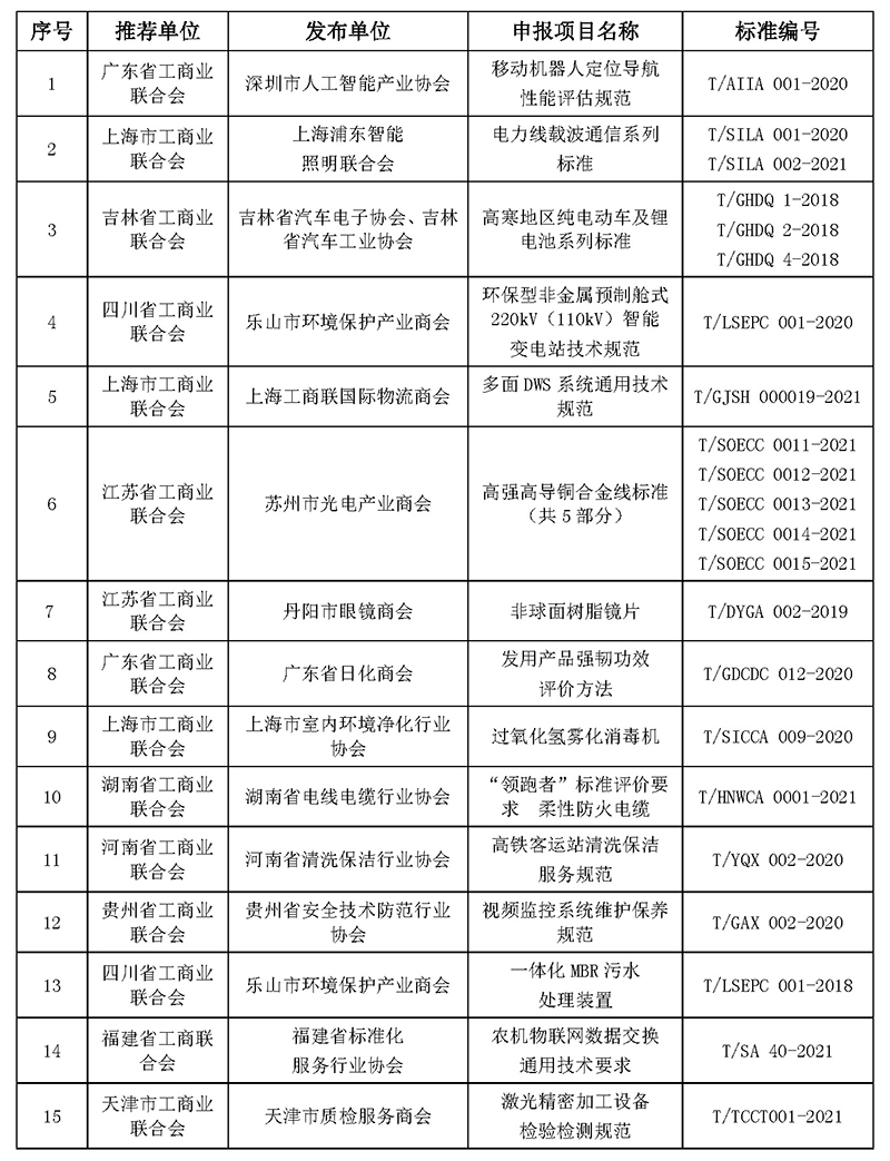 全国工商联标准化工作委员会关于2022年商会团体标准“领先者”评审结果的公示