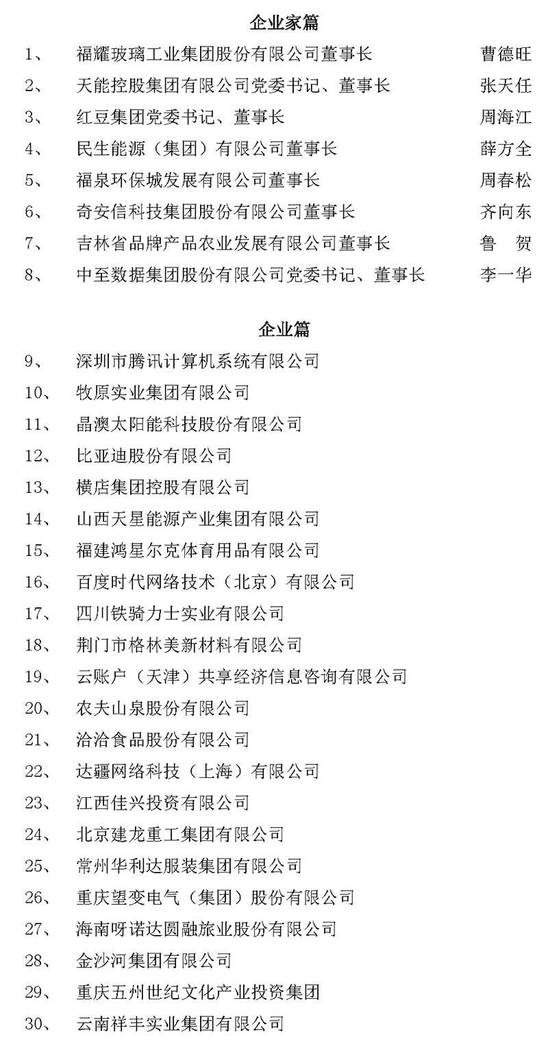 现将名单予以公示,接受社会监督。公示期间,如对入选企业和企业家有不同意见,可以电话、电子邮件、信函等形式向全国工商联反映(信函以到达日邮戳为准)。反映情况需真实客观,以单位名义反映情况的材料需加盖单位公章,以个人名义反映情况的材料应署实名并提供有效联系方式。