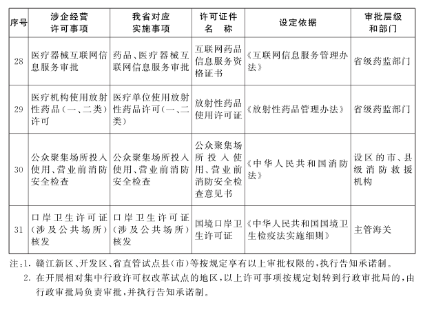 (二)建立清单管理机制。省政务服务办会同省直有关部门编制了《江西省实行告知承诺制涉企经营许可事项清单》(附件1),共31项。对法律、法规、国务院决定设定,省、市、县三级实行告知承诺制的涉企经营许可事项全部纳入清单管理;我省地方层面设定的涉企经营许可事项具备条件实行告知承诺制的,由省直有关部门研究提出建议,报省政府批准后纳入清单管理。同时,根据法律、法规、规章等规定的立改废释及工作实际,对清单实行动态调整。