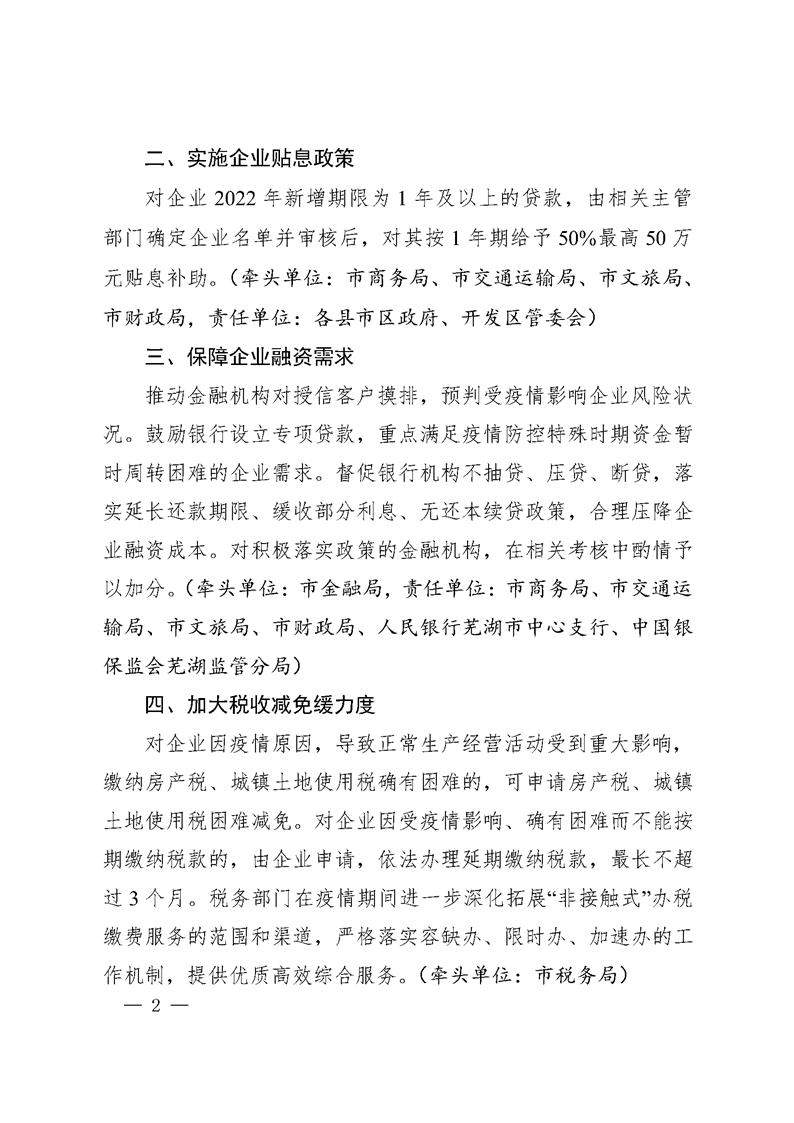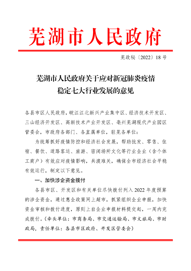 安徽省芜湖市出台 《芜湖市人民政府关于应对新冠肺炎疫情稳定七大行业发展的意见》