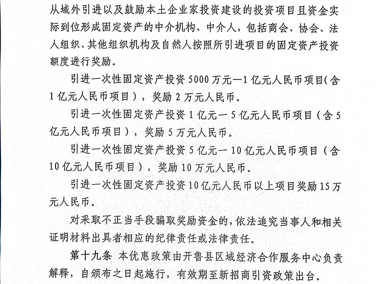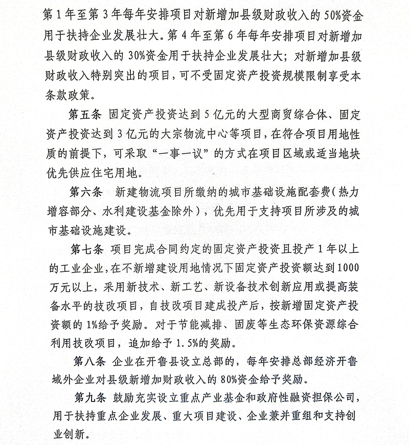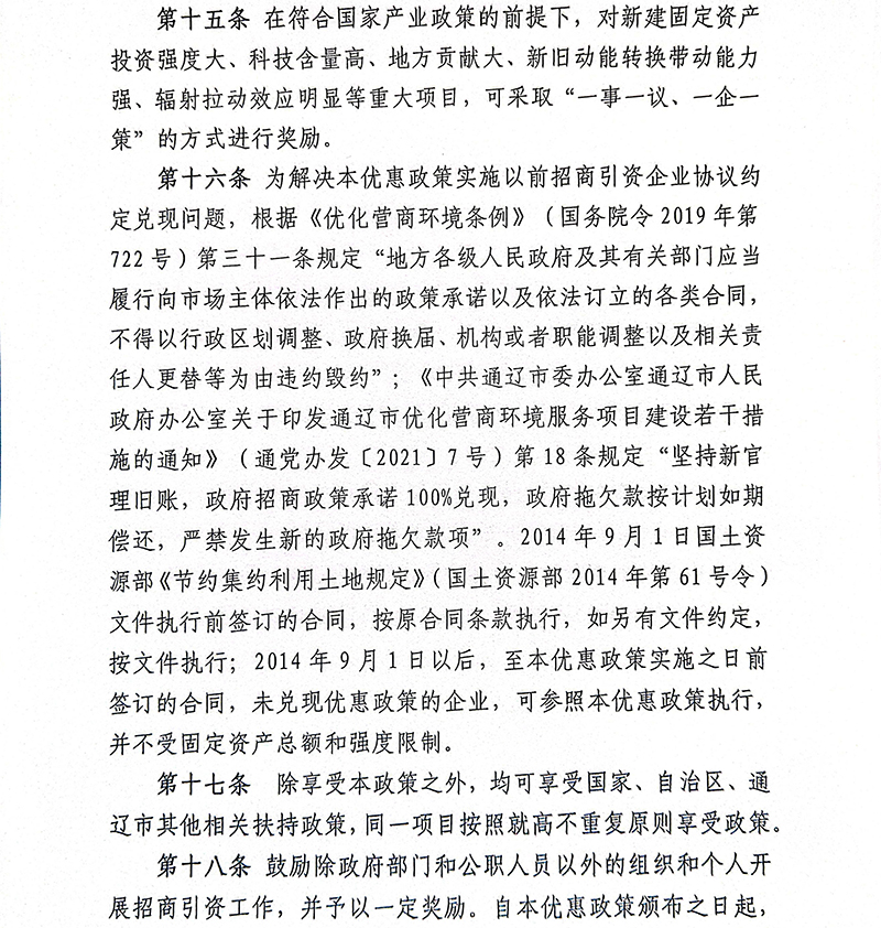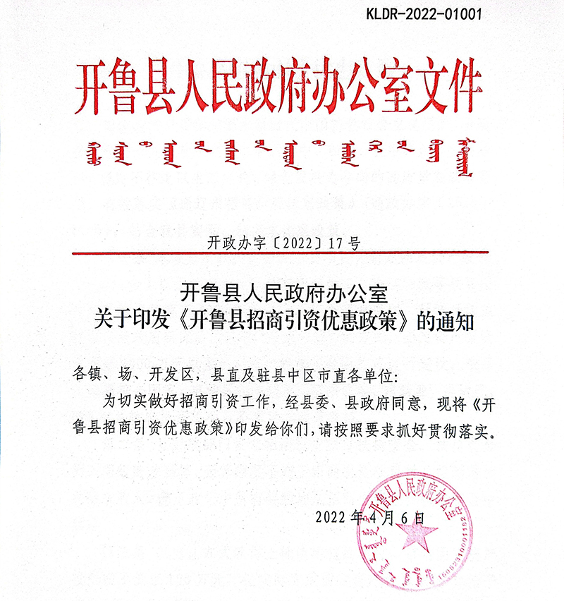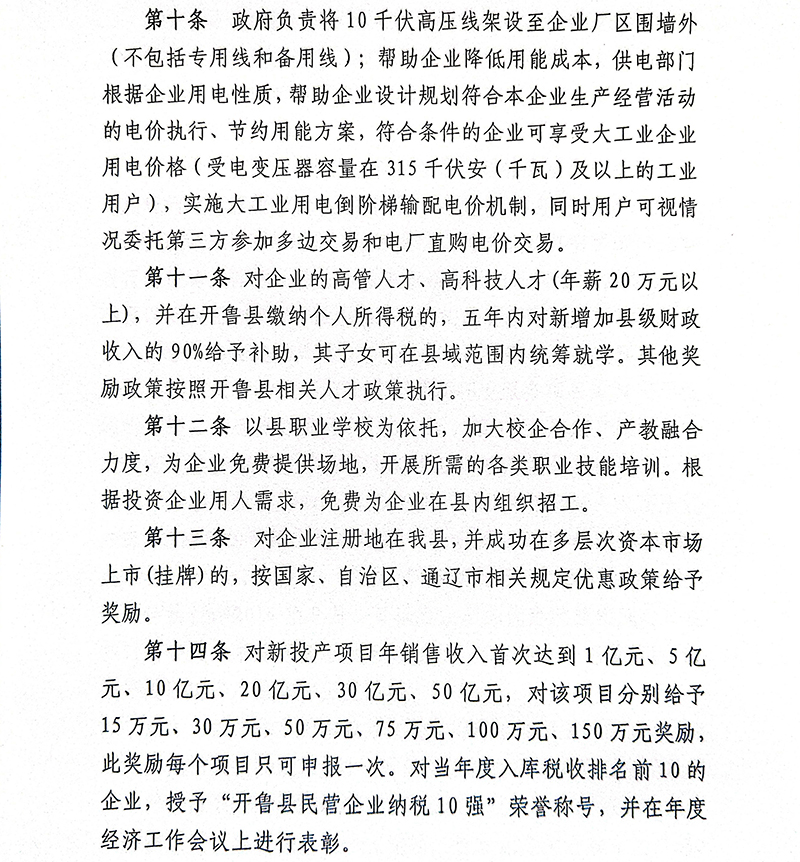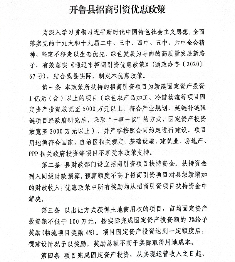 内蒙古自治区通辽市开鲁县招商引资优惠政策