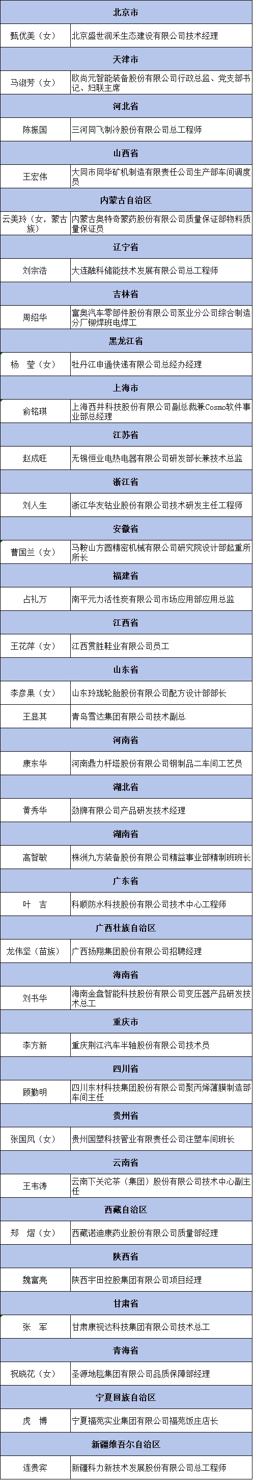 “全国热爱企业优秀员工”名单