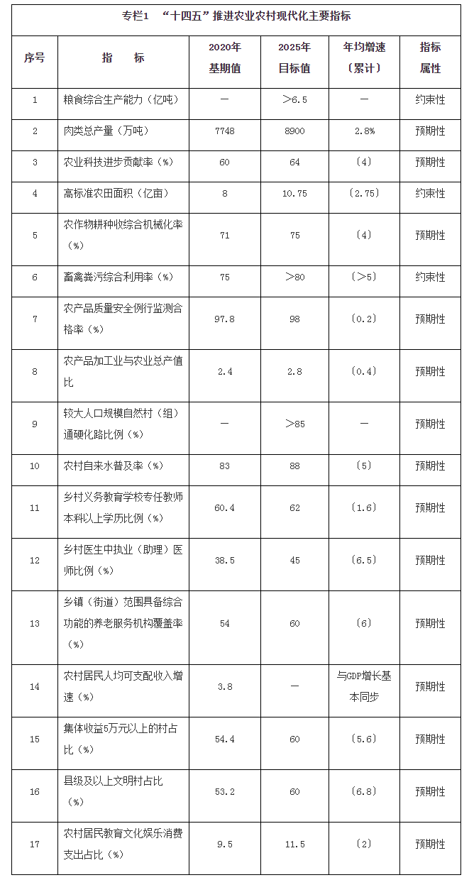 国务院关于印发“十四五”推进农业农村现代化规划的通知