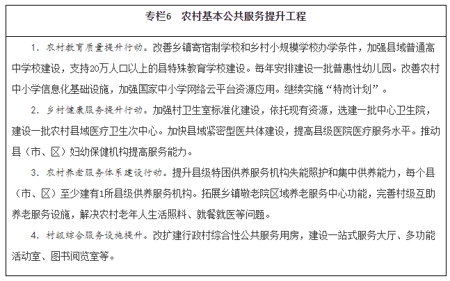 提升村级综合服务能力。加强村级综合服务设施建设,完善便民服务设施。制定村级公共服务目录和代办政务服务指导目录,提供就业社保、社会救助、卫生健康、法律咨询等公共服务。发展农村普惠性托幼服务,健全农村留守儿童、妇女、老年人、残疾人以及困境儿童关爱服务体系。加快推动乡镇社会工作服务站建设,吸引社会工作人才提供专业服务。加强农村公益性殡葬设施建设。